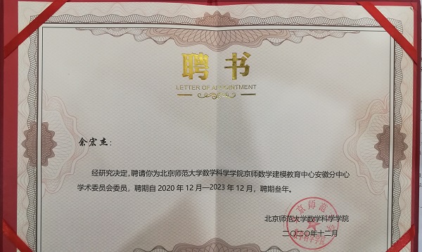 我校教师受聘为京师数学建模教育中心安徽分中心学术委员会委员
