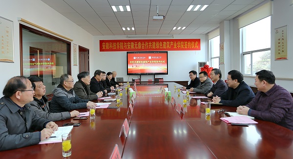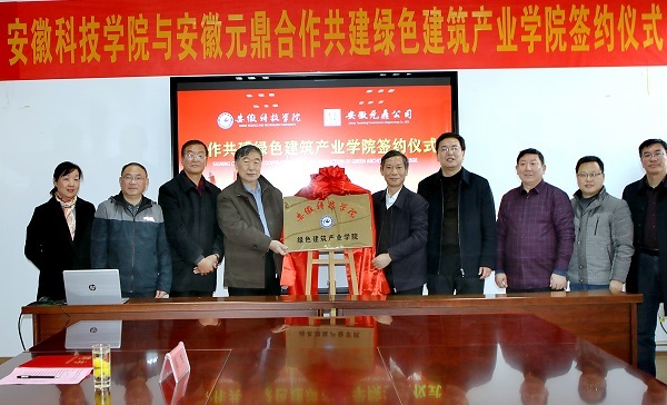 12月20日下午,我校“绿色建筑产业学院”签约暨揭牌仪式在安徽元鼎建设工程有限责任公司三楼会议室举行。党委副书记、校长李震,党委委员、副校长黄友锐,教务处处长俞浩,建筑学院院长张远兵、党委书记傅友福;安徽元鼎建设工程有限责任公司董事长叶士平、党委书记吕义龙、副总经理张志坚、总工程师张继文等共同参加了签约暨揭牌仪式。仪式由张远兵主持。