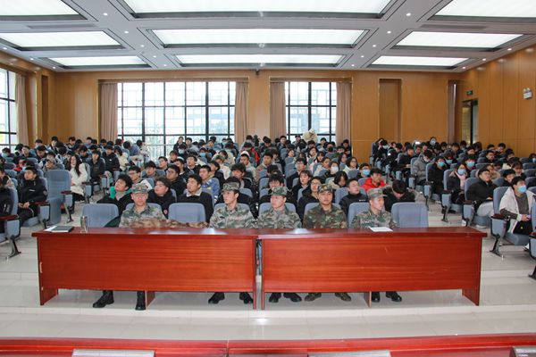 为弘扬爱国主义精神,增强大学生的国防意识,充分发挥退役大学生榜样示范作用,由党委学工部、学生处主办,校八一社、校国旗护卫队承办的退役大学生国防教育系列报告于12月30日下午在龙湖校区敏B报告厅举行,来自龙湖校区六个学院的200余名2020级学生参加。报告会由学生处学生科科长、领航工作负责人石志成主持。