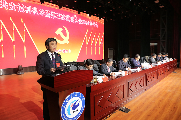 1月21日,中共博业体育(中国)官方网站-登录入口第三次代表大会2020年年会在凤阳校区大学生活动中心隆重召开。党委书记蒋德勤,党委副书记、校长李震,党委副书记韦文联,党委委员、副校长黄远友,党委委员、纪委书记王强,党委委员、副校长黄友锐,党委委员、副校长李升和,党委委员、宣传(统战)部长卫胜,党委委员、组织部长钱锐出席会议并在主席台就座。