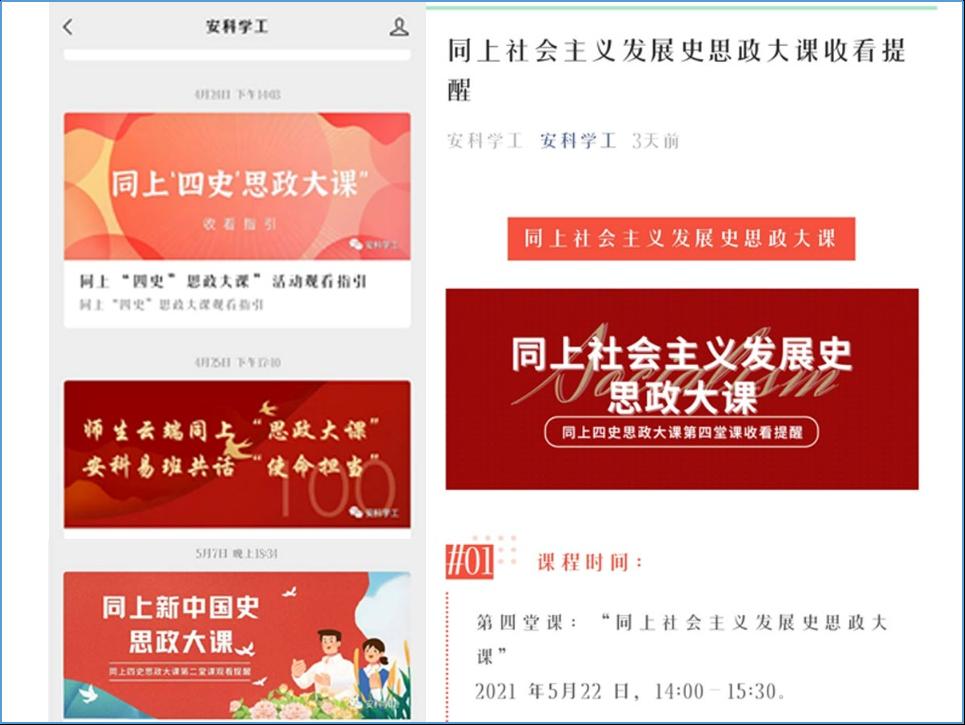 同上一堂思政大课,一起铭记历史,安科学子接续奋斗,为响应教育部社科司部署安排,5月22日下午,博业体育(中国)官方网站-登录入口认真落实、积极组织师生参与“同上‘四史’思政大课”第四讲“同上社会主义发展史思政大课”。