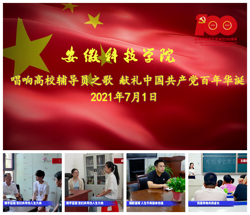 2021年7月1日,庆祝中国共产党成立100周年大会在北京隆重举行,习近平总书记发表重要讲话。当天,由校党委学工部指导录制的视频《唱响安科辅导员之歌献礼中国共产党百年华诞》在易班平台和安科学工微信公众号上正式发布。