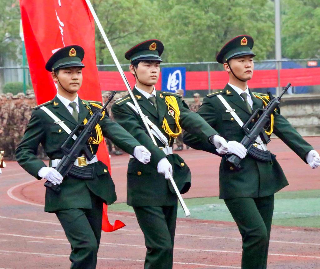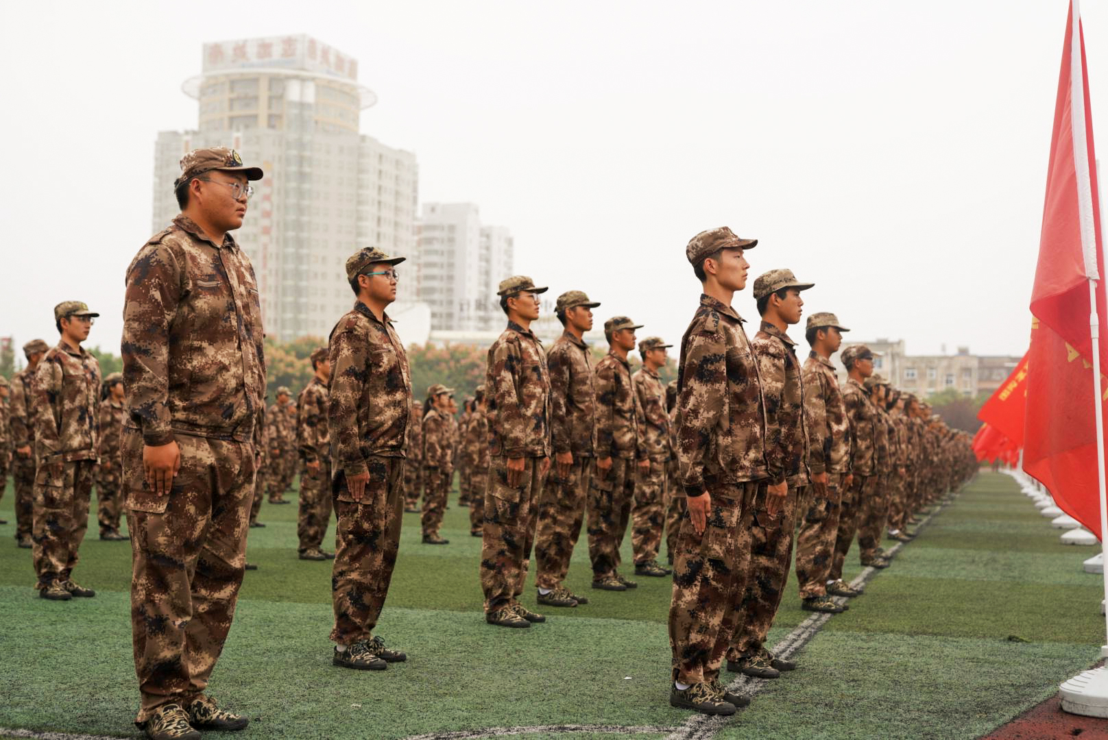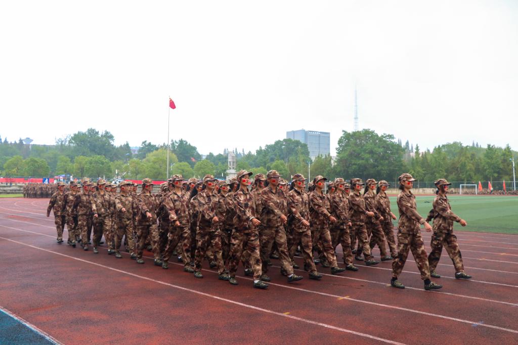 虽然天公不作美,但胜在清风徐徐,凉意阵阵。2021级新生以坚韧不拔的意志和自信昂扬的朝气,以英姿飒爽、奋发向上的精神风貌接受学校领导、教官的检阅。