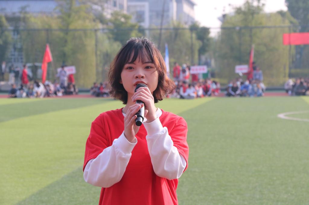 听,演唱者用歌声为即将登场的运动员加油助威,时而高昂,时而舒缓,遏云绕梁,振奋人心。正如歌曲所唱:“超越梦想,超越自我。”运动员们定能在操场上奋勇拼搏,取得理想成绩。