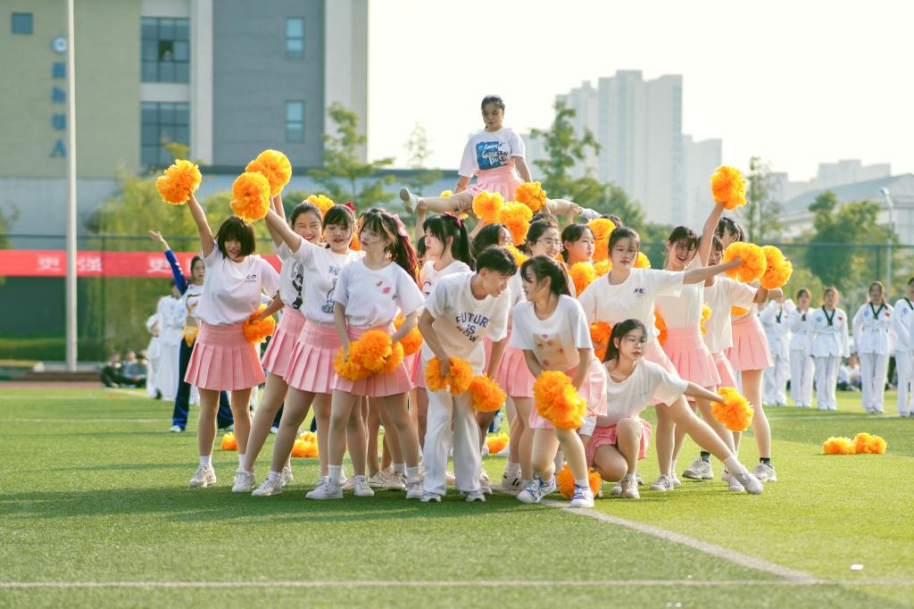 整齐划一的手臂舞成为操场上独具一格的风景,那纤细优雅的手臂随着音乐的韵律而摆动,曼妙的身姿翩若惊鸿,婉若游龙,给安科学子加油助威。