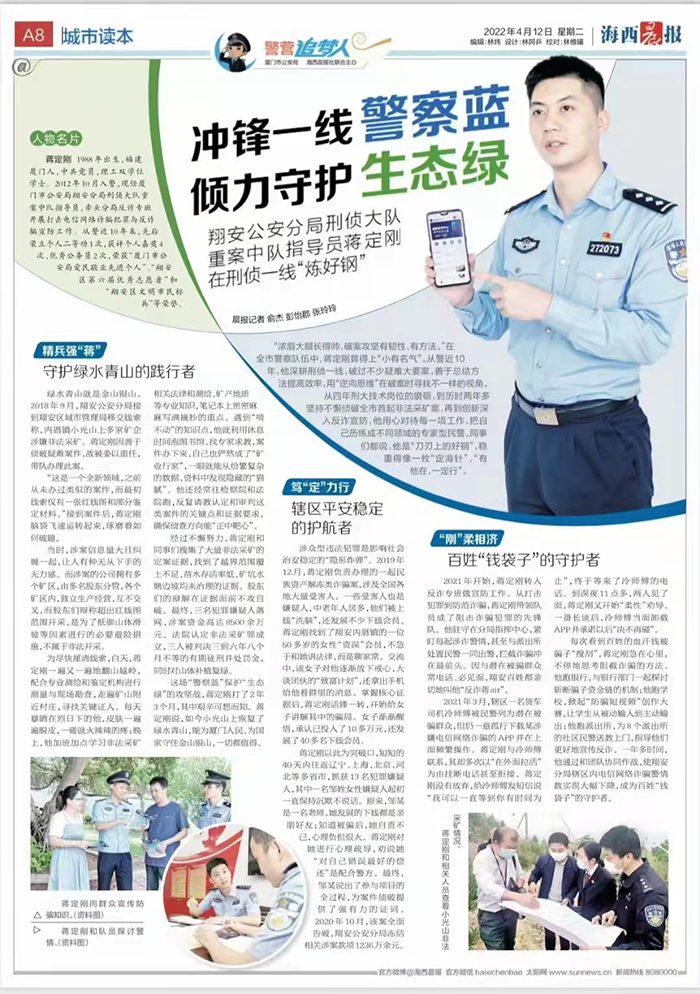 【海西晨报】专版报道我校校友蒋定刚事迹
