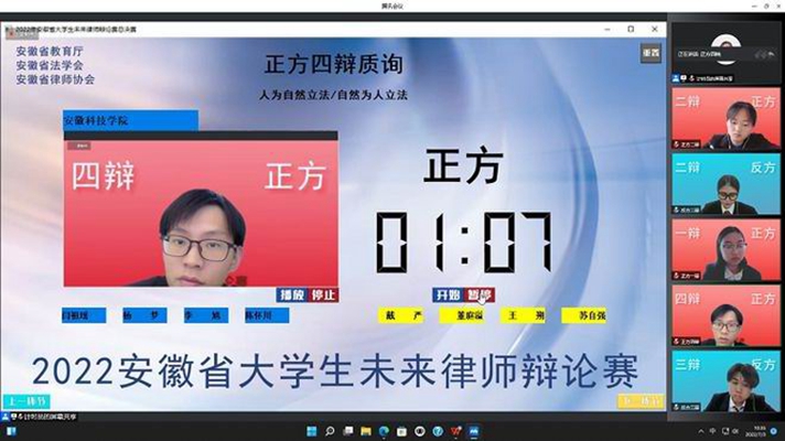 2022年6月26日至7月3日,由安徽省教育厅、安徽省法学会、安徽省律师协会主办,皖西学院承办的2022年安徽省大学生未来律师辩论赛经过一周的线上初赛、复赛、半决赛和总决赛圆满落幕。人文学院法学专业学子组成的代表队一路历经层层选拔,从来自全省的二十一支队伍中脱颖而出,成功进入四强决赛,最终取得比赛亚军、团体一等奖的成绩。