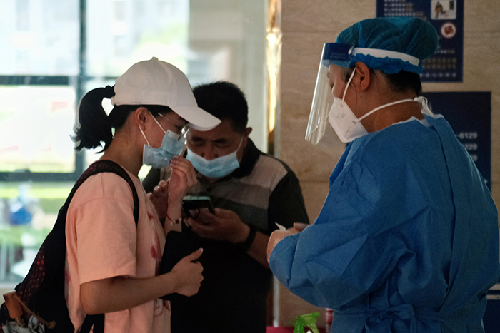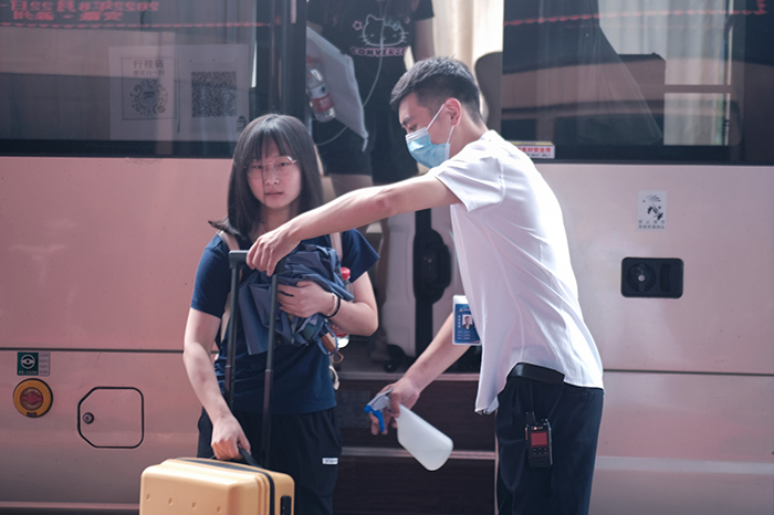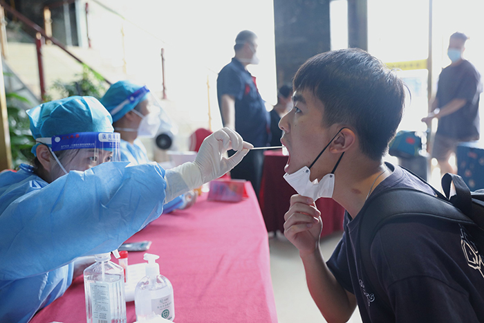 为了确保各高校代表队顺利完成报到,我校在报到处放置了“安康码”扫码、核酸检测处、报到登记处等指示牌,每个报到环节均有志愿者热情引导,悉心服务。报到现场,各高校代表队在我校志愿者的引导下,有序核验健康码、行程码,依次进行落地核酸检测。随后,运动员们有序签到,进行资格审查工作,工作人员依次核对身份证、学籍在线验证报告、安全风险报告、领队承诺书和疫情防控承诺书等。