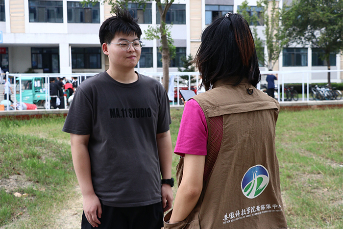 当被志愿者问及是否是新生时,宋小米笑说:“算是吧,我是专升本来的”。与其他新生一样,宋小米也对这个陌生的校园充满了期待。谈及查询录取结果时刻的心情,宋小米表示十分喜悦,对于她来说,考入安科不仅仅是梦想的完成,更是一个全新的起点,在这里她也将尽她最大的力量完成学业,明确自己的目标,努力完成自己的计划,学习更多的专业知识。