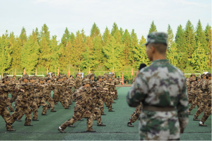 星光不问赶路人,时光不负实干者。新生以饱满的精神状态展示着军体拳,动作干净利落,尽显青年之刚毅果敢。