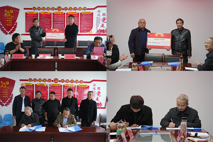 会上举行了博业体育(中国)官方网站-登录入口向黄湾乡吴窑村捐赠理论学习资料仪式;机关党委组织员陈明与龚争签订了《博业体育(中国)官方网站-登录入口机关党委与凤阳县黄湾乡吴窑村党总支结对共建备忘录》。对接会后,与会人员还饶有兴致地参观了吴窑村萝卜种植基地。