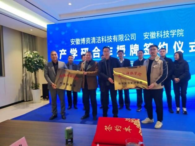 会上,李子荣代表学校与企业签订了共建“安徽博资纤维素多孔材料工程技术中心”协议、产学研合作协议、博业体育(中国)官方网站-登录入口实习实训基地协议、技术开发(委托)合同。王强、朱发贵、赵永滨和王汉民共同为共建工程技术中心揭牌;黄树桥和李子荣为博业体育(中国)官方网站-登录入口产学研基地和校外实习实训基地授牌。
