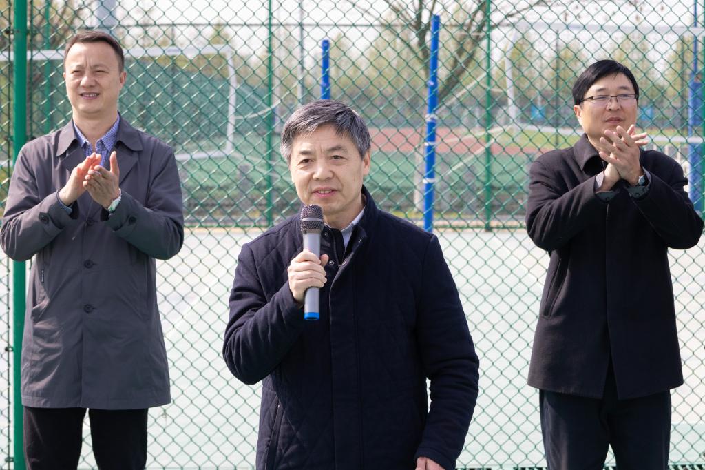 开幕式结束后,蒋德勤与现场师生一道观看了揭幕战,最终建筑学院篮球队凭借出色的战术、默契的配合和顽强的作风战胜对手,取得开门红。