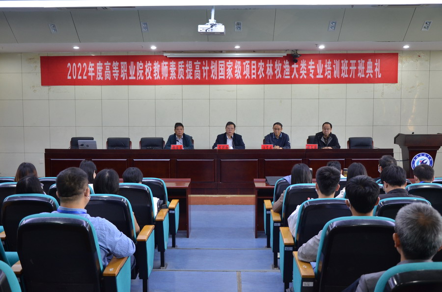 5月9日上午,2022年度安徽省高等职业院校教师素质提高计划国家级培训项目农林牧渔类专业教师课程实施能力提升培训班开班典礼在博业体育(中国)官方网站-登录入口凤阳校区图书馆第一报告厅成功举行。我校党委委员、副院长李升和教授,安徽工商职业学院汪贤武教授受邀出席开班仪式,仪式由继续教育学院党支部书记、院长杨维来主持。
