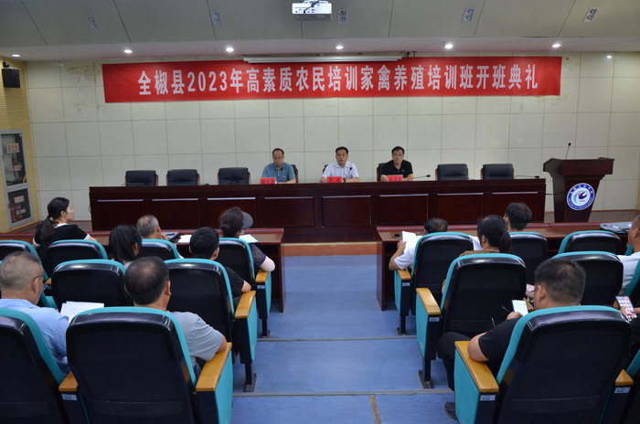 为深入贯彻党的二十大和中央农村工作会议、省委农村工作会议精神,加快推进高素质农民培育工作, 8月6日上午,我校在会议中心第一报告厅举办了全椒县2023年高素质农民家禽养殖培训班开班典礼。全椒县动物疫病预防与控制中心副主任孙克明、继续教育学院副院长(主持工作)李忠等等相关工作人员及来自全椒县近50名养殖合作负责人、兽医技术人员参加了开班仪式。仪式由继续教育学院副院长张文国主持。