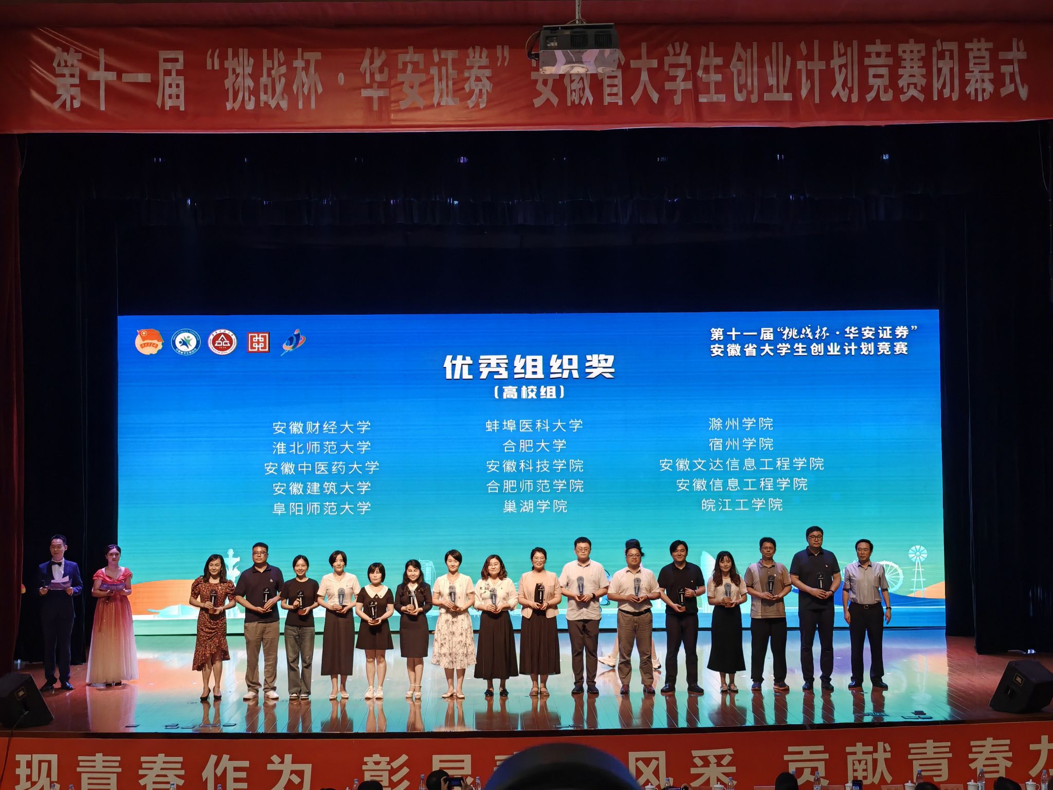 青春筑梦,科创报国。6月20日下午,由团省委、省教育厅、省科协、省社科院、省学联共同举办的第十一届“挑战杯·华安证券”安徽省大学生创业计划竞赛决赛在芜湖安徽工程大学胜利闭幕。我校9支队伍在380支决赛团队中突出重围,获金奖2项,银奖7项,学校荣获“优秀组织奖”。
