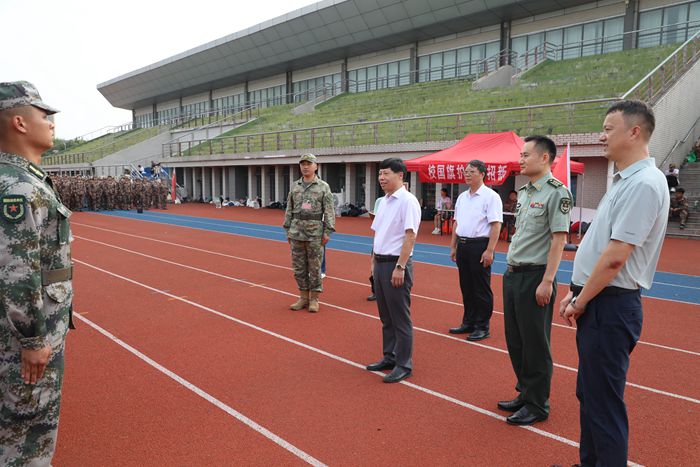 在军训现场,军训团教官整齐列队。时伟指出,最近一段时间,天气比较炎热,军训教官克服困难,科学施训、认真组训、严格管训,军训工作进展顺利,对大家的辛勤工作表示慰问和感谢,向广大官兵致以诚挚的中秋节祝福。他希望军训教官继续保持良好的工作状态,关心教官和学生身体健康,按照军训计划的安排做好下一阶段的工作,确保军训取得预期成效。他要求学生处要协调相关部门共同做好军训教官的生活服务,为军训教官顺利开展工作提供良好条件和有力保障。