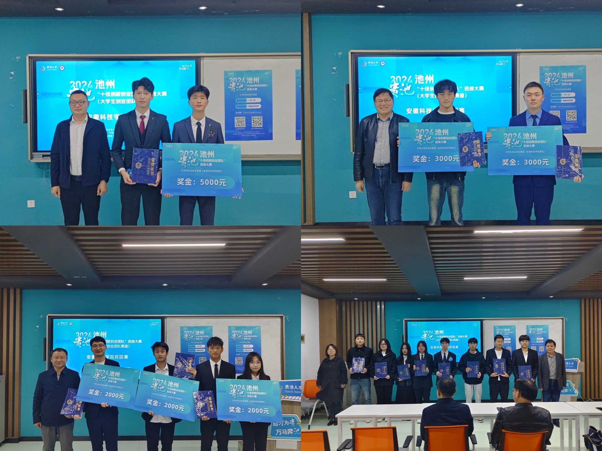 11月13日下午,池州·贵池“十佳创新创业团队”选拔大赛博业体育(中国)官方网站-登录入口校园赛决赛在凤阳校区落下帷幕。此次大赛由中共池州市贵池区委人才工作领导小组主办,校赛由生命与健康科学学院承办。池州市贵池区委组织部副部长张兆军,贵池区委人才工作领导小组办公室专职副主任钱伟伟,教务处副处长、创新创业学院副院长高青海,生命与健康科学学院副院长(主持工作)钱立生等出席决赛并为参赛团队颁奖。