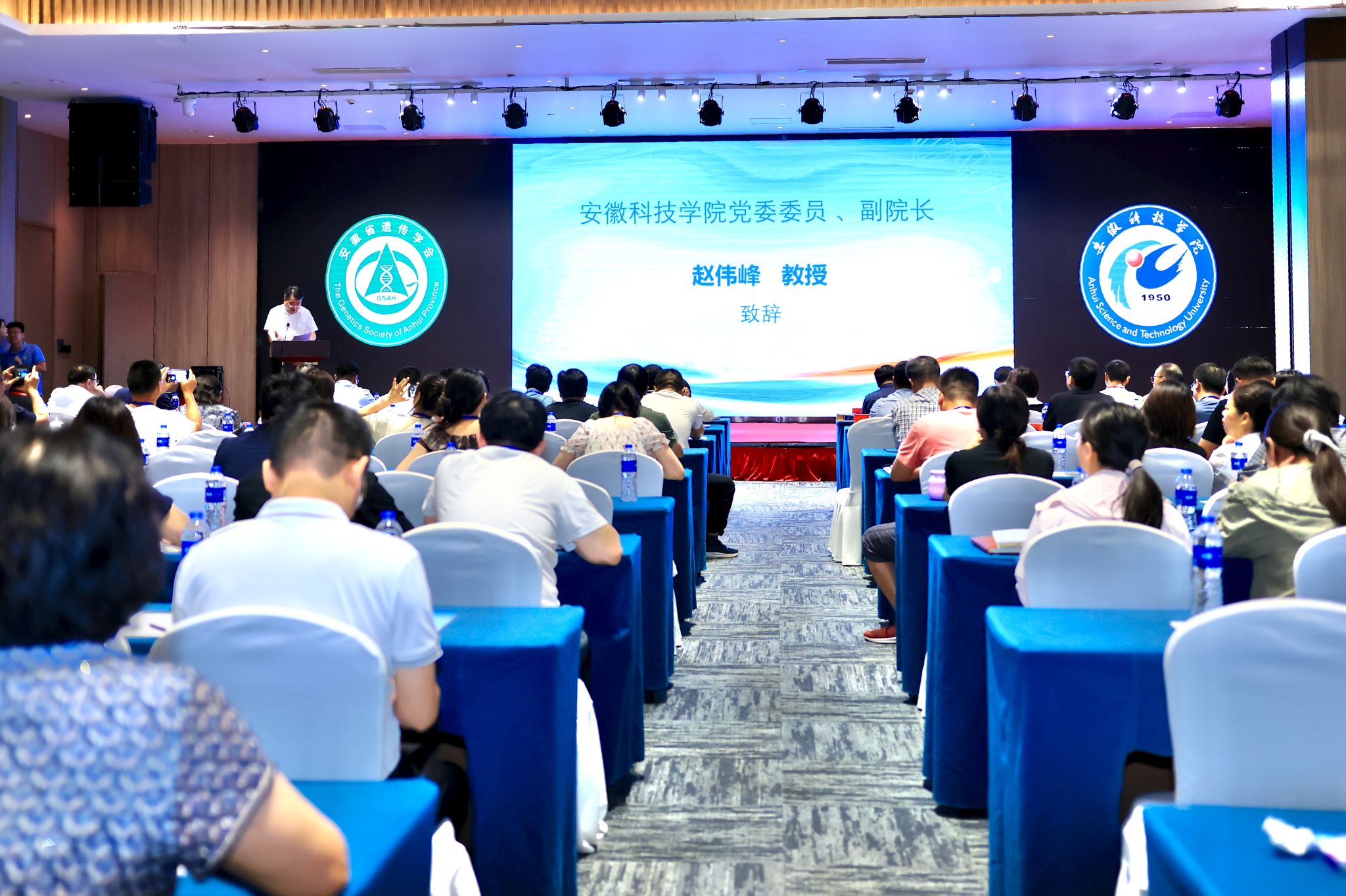 赵伟峰在致辞中向与会专家表示热烈欢迎,并简要介绍了学校“以农立校、特色兴校”的办学理念以及在作物遗传育种领域取得的突出成就。他强调,作为现代农业科技的核心驱动力,遗传学研究对保障国家粮食安全、实现种业振兴具有战略意义,期待本次年会成为深化产学研合作的重要契机,为安徽省农业现代化发展提供新思路、新动能。