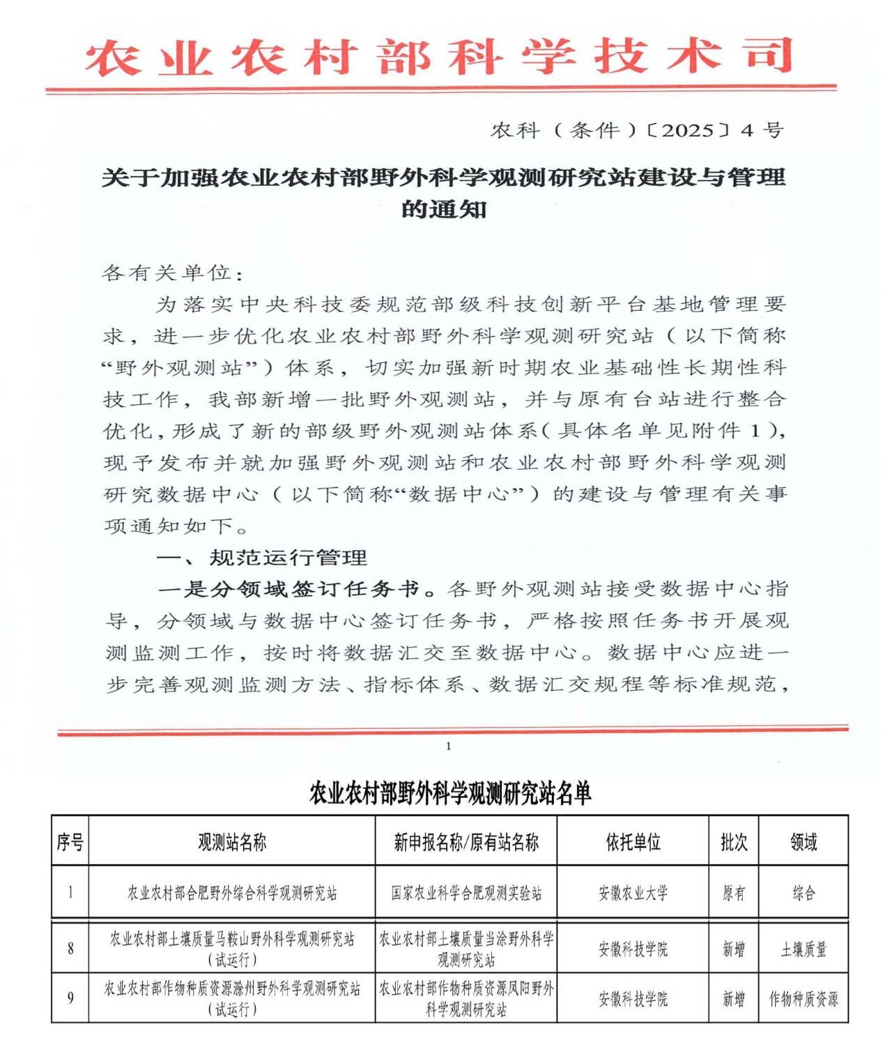 近日,由我校申报的“农业农村部土壤质量马鞍山野外科学观测研究站”“农业农村部作物种质资源滁州野外科学观测站”获批立项建设,这是我校首次获批农业农村部野外科学观测研究站项目,标志着学校在服务国家农业战略方面迈出关键一步。