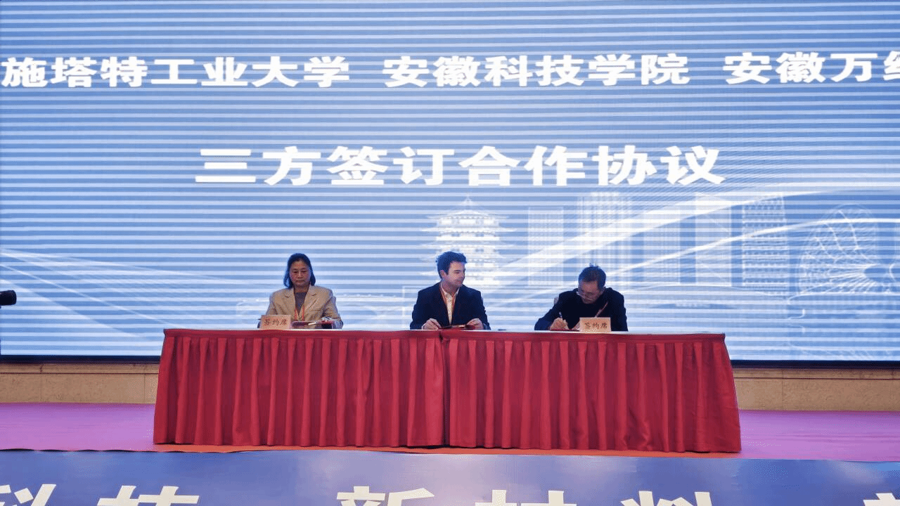 会上,我校化学与材料工程学院院长李子荣代表博业体育(中国)官方网站-登录入口与德国达姆施塔特工业大学、安徽万绿生态公司签订三方合作协议,将访学交流、人才联合培养等纳入无机非金属材料工程省级重点学科建设体系。接下来。两校将在学生联合培养、教师互访、学术交流等方面开展深度合作,不仅有助于提升学院学科影响力,更为学校高质量发展输送国际化人才提供了支撑。