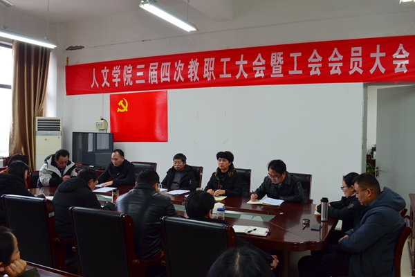 1月3日下午,人文学院在学院会议室召开三届四次教职工大会暨工会会员大会。人文学院党政领导、全体教职工参加会议。会议由副院长李晓东主持。