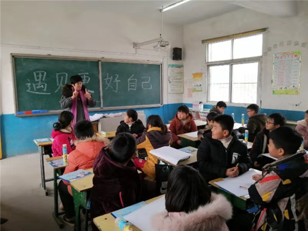 省辅导员名师工作室大学生团体心理辅导工作室负责人、管理学院党总支秘书陶漫为王桥村五座楼小学五年级学生作了题为“遇见更好的自己”关爱留守儿童绘画团体心理辅导。