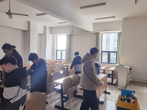 有的团支部在校园内打扫教室卫生,锄草捡拾落叶,弘扬志愿服务精神。