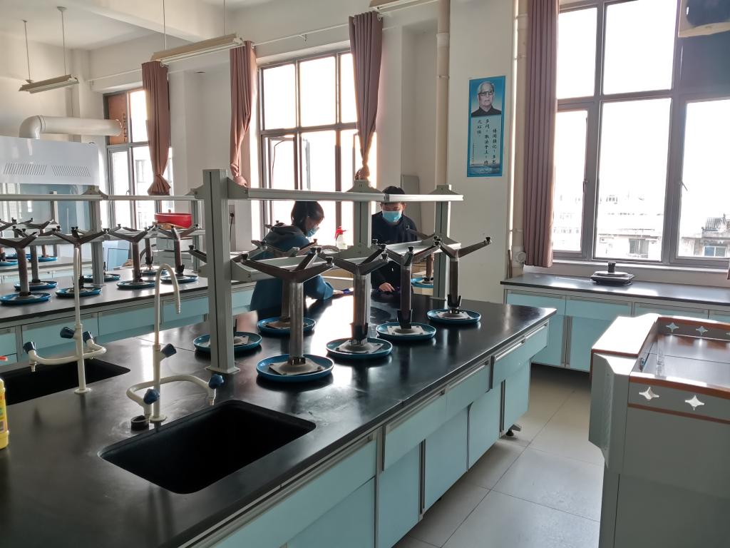 种子与植保学生党支部姚文豪、张莹莹两位党员在打扫复试地点