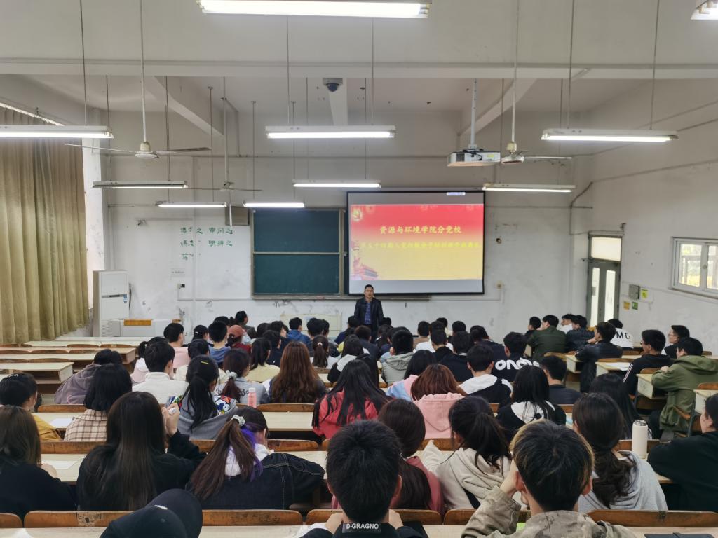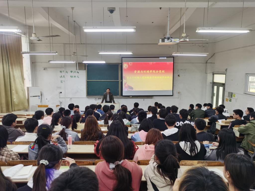 4月6日中午,资源与环境学院分党校在求知楼A101举办第五十四期入党积极分子培训班开班典礼。党委副书记沈树周及79名入党积极分子参加会议,会议由学院党政办主任吴国良主持。