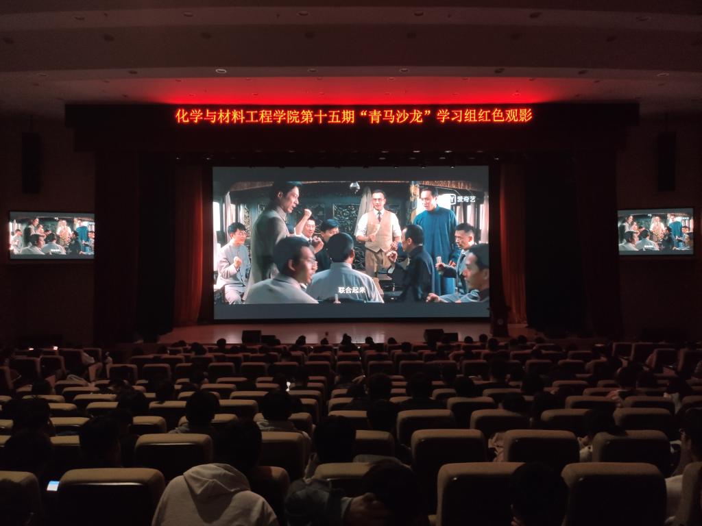 4月10日晚,化学与材料学院于综合信息楼图书馆报告厅组织第十五期“青马沙龙”全体学员观看党史教育影片《建党伟业》。