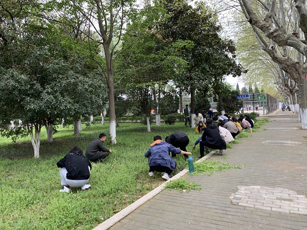 学校是我家,美化靠大家。为深入落实党史学习教育,弘扬劳动精神,进一步美化校园环境,4月19日,动物科学181班全体学生在班长许庆威的组织带领下在校园开展“义务除草,美化校园”活动,对校内花圃的杂草以及垃圾进行清理。
