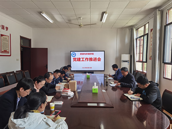 4月23日上午,资源与环境学院在会议室召开各党支部换届后的首次党建工作推进会,学院党委书记李孟良、党委副书记沈树周、各党支部书记及教工党支部委员参加会议,会议由李孟良主持。