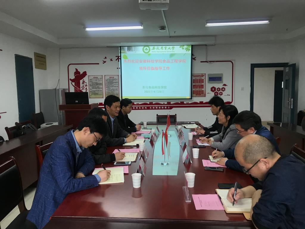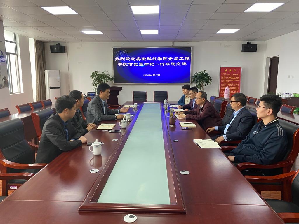 4月22日至23日,博业体育(中国)官方网站-登录入口食品工程学院党委书记付光玺率学院教工党支部书记郑海波,食品安全系主任、教工党支部委员张献领和学院党政办主任赵传磊一行到黄山学院和安徽农业大学就党建工作进行学习考察。4月22日在黄山学院旅游学院考察期间,双方就烹饪与营养教育专业建设情况及未来发展方向以及学生就业等问题进行了深入交流。