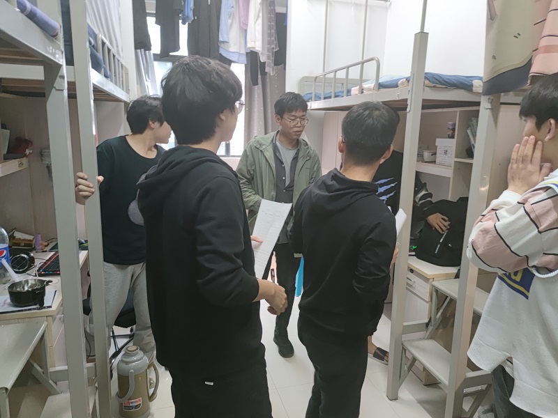 为关注困难学生动态、了解学生住宿环境,加强学生宿舍安全管理及学生安全教育工作,近日,电气与电子工程学院团委书记张成孜,辅导员陈更强、宋志华、张深、洪乃羽带领学院学生党员、学生会成员陆续开展学生宿舍安全卫生检查和外宿排查工作。