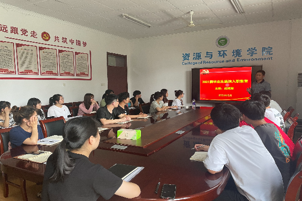 为贯彻落实学校2021届毕业生毕业教育工作要求,提高学生党员廉洁意识,将廉洁教育落到实处,5月27日,资源与环境学院于东办公楼207学院会议室开展毕业生党员廉洁入职教育。资源与环境学院党委副书记沈树周担任主讲人,本支部全体毕业生党员参加了此次报告会议。