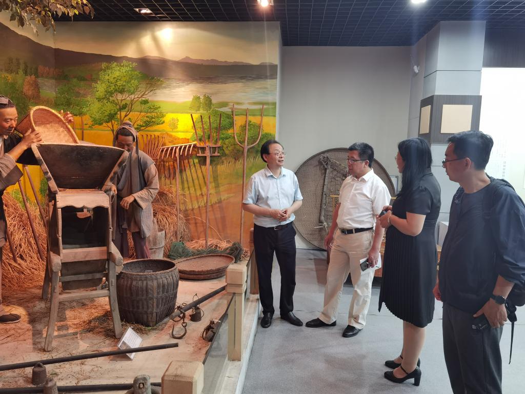 为认真贯彻落实习近平总书记关于传承农耕文化指示精神,大力传播传承农耕文化,深入推进党史学习教育,6月3日,农学院党委书记何世潮带队赴安徽省农业博物馆(农博馆)实地考察学习,双“农”同心,洽谈合作共建博业体育(中国)官方网站-登录入口“三农文化墙”事宜,传播传承农耕文化。农学院植物保护系主任毕亚玲博士、现代农业实习实训中心主任郑甲成博士、副主任王增霞博士随同调研。