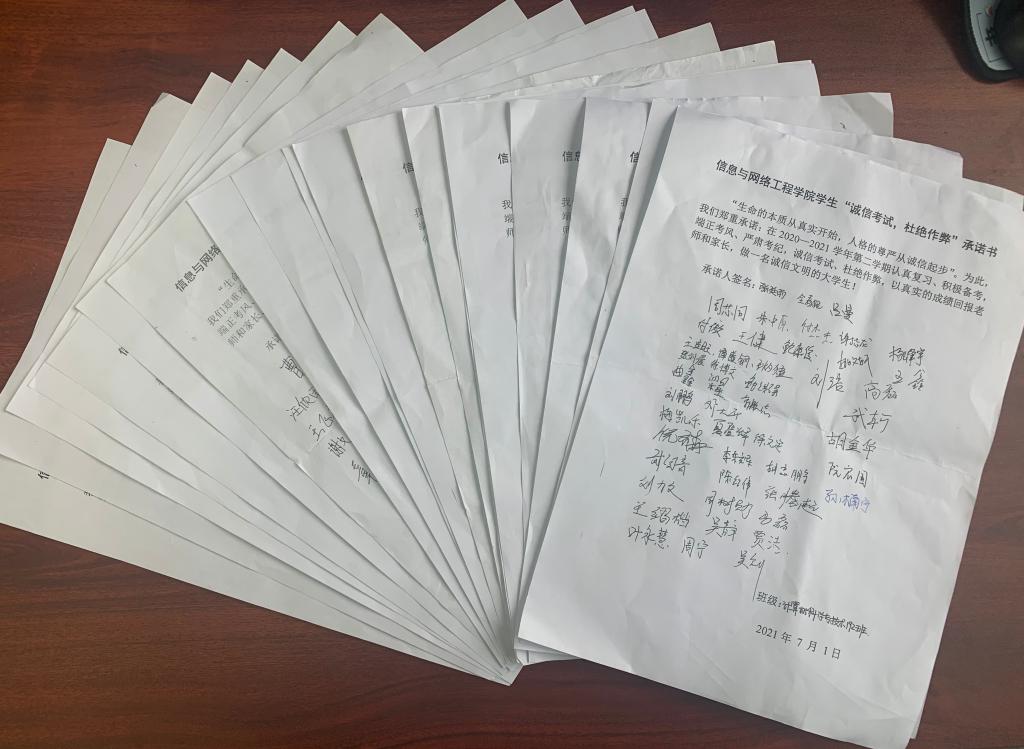 为确保将主题班会落到实处,学院专门制定《信息与网络工程学院考风考纪教育主题班会提纲》,准备了相关会议资料,要求各班辅导员按照提纲的内容和要求认真落实,精心准备。主题班会上,全体同学共同学习了《学生手册》中《博业体育(中国)官方网站-登录入口考试工作实施细则(节选)》及《博业体育(中国)官方网站-登录入口学生违纪处理方法》,开展了警示教育,按照《信息与网络工程学院诚信考试倡议书》的内容,发出了诚信考试倡议,希望同学们树立底线思维,积极响应学校的号召,手握诚信纸笔,书写高尚考风,坚决抵制各种舞弊行为,净化考场环境,展现自我真实水平,端正的考风、积极创造优良的学风。各班辅导员在总结时强调,诚信文明是立德成才的根本,是大学生必备的核心品质与基本修养,对大学生的未来职业发展、个人成才有着至关重要的作用。主题班会结束后,各辅导员组织全体学生签署了《信息与网络工程学院学生“诚信考试,杜绝作弊”承诺书》。