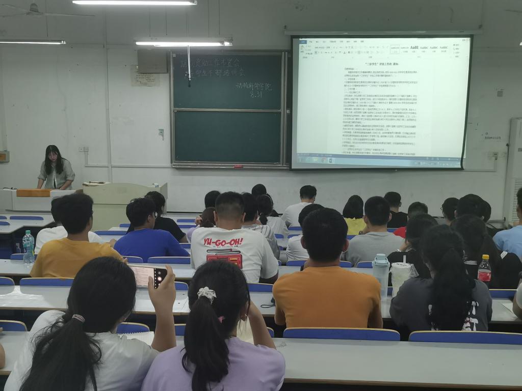 为推进期初资助工作的顺利开展,提高学生干部资助工作能力与意识,9月1日晚,动物科学学院在求A106教室召开初期资助工作布置会暨学生干部培训会,学院全体班长、团支书、资助委员等参加了培训。会议由学院资助工作联系人范雨梦老师主讲,辅导员胡文丽老师主持。