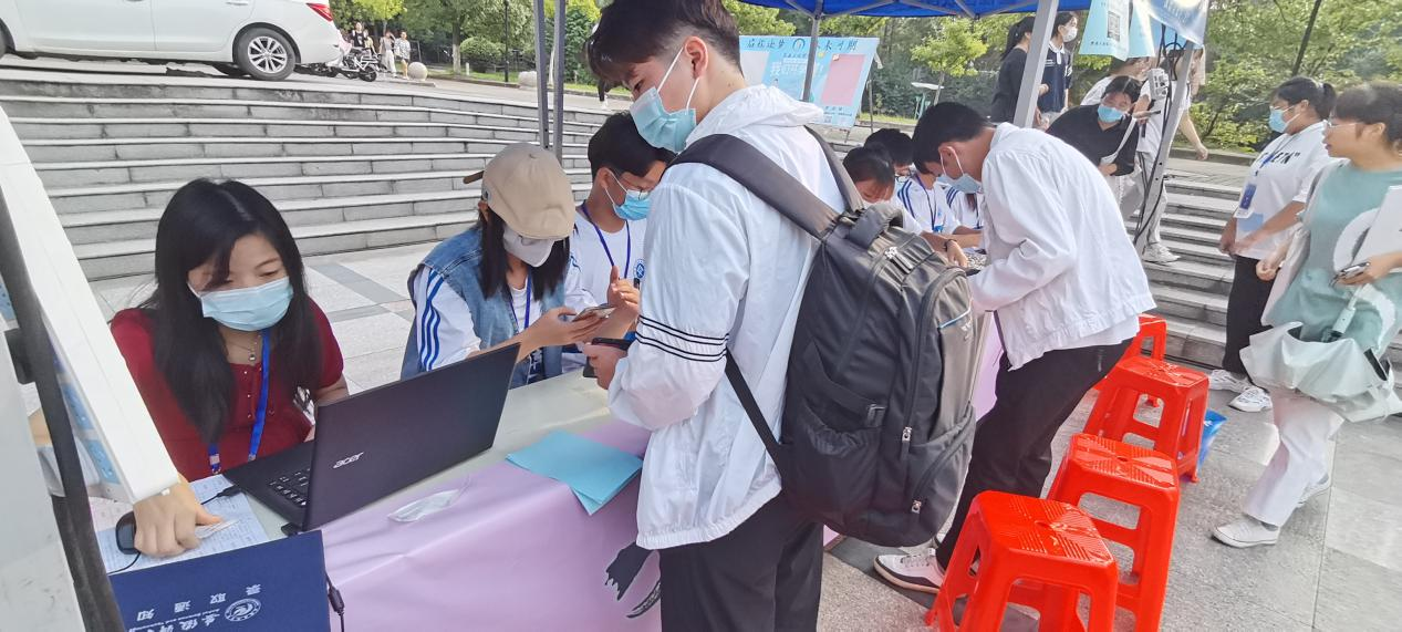 迎新现场到处都是忙碌的身影。迎新志愿者们主动帮着新生拎行李,耐心地回答着他们提出的各种问题,并为他们介绍新生报到期间的各种注意事项。学长学姐们热情周到的服务很快消除了新生们初来乍到的陌生感。