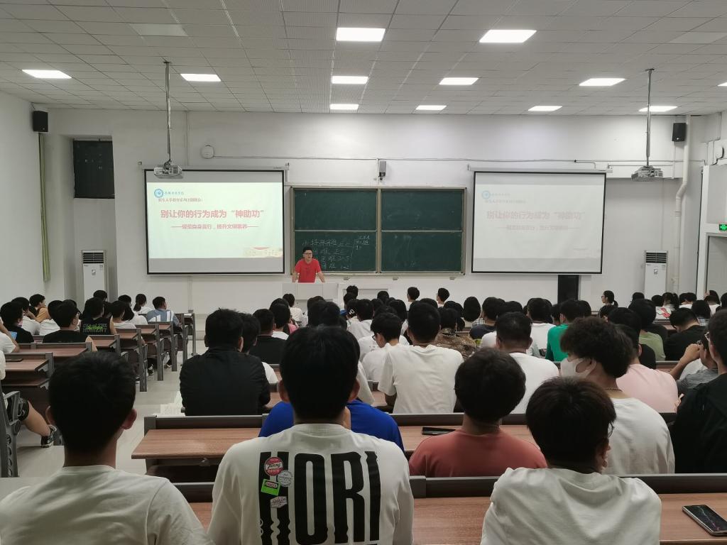 9月21日晚辅导员沈竞成在致知楼A111召开新生入学系列主题班会,为同学们开展文明行为养成与理想信念教育。