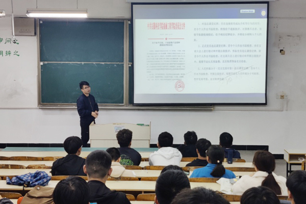 会上,邱杰对《机械工程学院关于切实提升学风建设成效的实施方案》进行了详细解读。从学院、教师、辅导员和班级学生干部四个角度,对学风建设工作实施细节进行了说明,明确了学生干部要在班级学风建设中起到的引领、督促和示范作用,强调了落实课堂“六不准”、积极推进学生“三走”活动、定期组织“四史”教育专题学习教育等工作要求。期间,邱杰还对《机械工程学院关于给予课堂违规使用手机等违反课堂纪律学生的处理意见》进行了重点解读,要求新生各班学生干部要增强责任意识,守好“责任田”,切实维护好课堂秩序,提高课堂听课、学习成效。