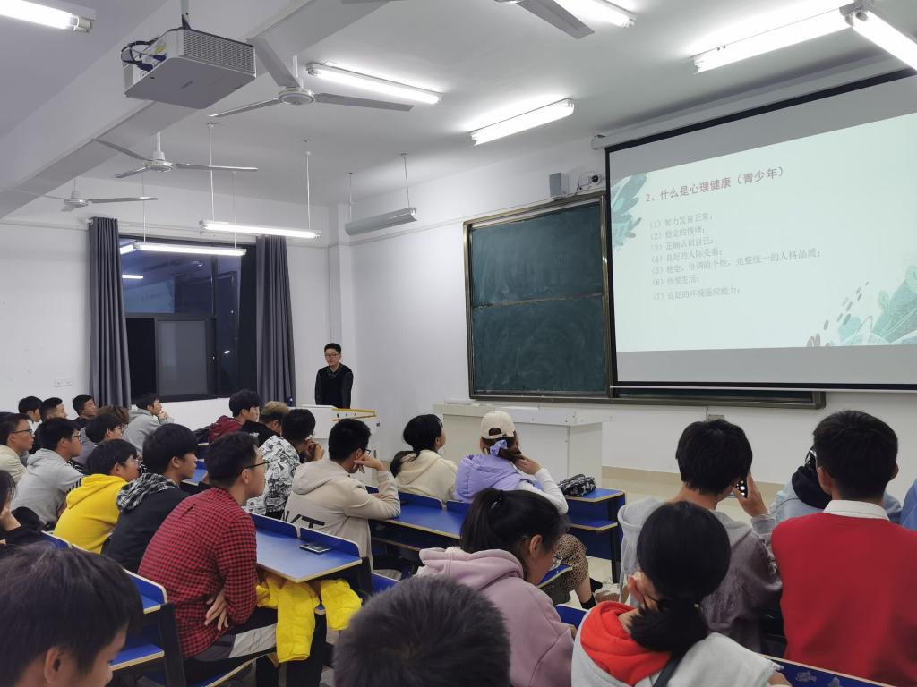 10月22日晚,化学与材料工程学院专职辅导员沈竞成在尚行楼C208教室,开展了主题为“大学生常见的心理问题及心理危机干预”的心理讲座,大一全体心理委员及其他部分班委、寝室长参加了此次讲座。