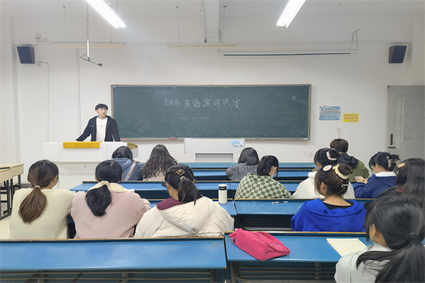为了进一步加强校园文化建设,引导广大青年学生强化英语学习能力,提高独立思考和语言表达能力。11月13日晚,资源与环境学院DAB英语协会于新知楼A209举办了英语演讲比赛。外国语学院陈丹丹,外国语学院程家乐,食品工程学院英语协会副会孙明慧以及资源与环境学院英语协会副会长宋德宏担任本次比赛评委,比赛由英语协会会长张书琪主持。经过前期的初赛选拔,此次比赛共有10位晋级决赛选上参加。