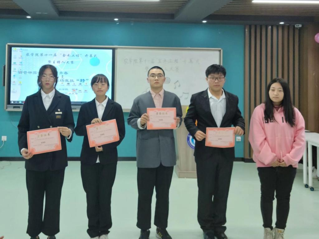 比赛共分为自我介绍、模拟主持、即兴主持三个环节。选手们字正腔圆、落落大方,沉着应对,声情并茂的展示让现场掌声不断。经过激烈角逐,马晴稳荣获一等奖,卢雨、张晨晨荣获二等奖,周辉阳、江贤康及李梦洁荣获三等奖。