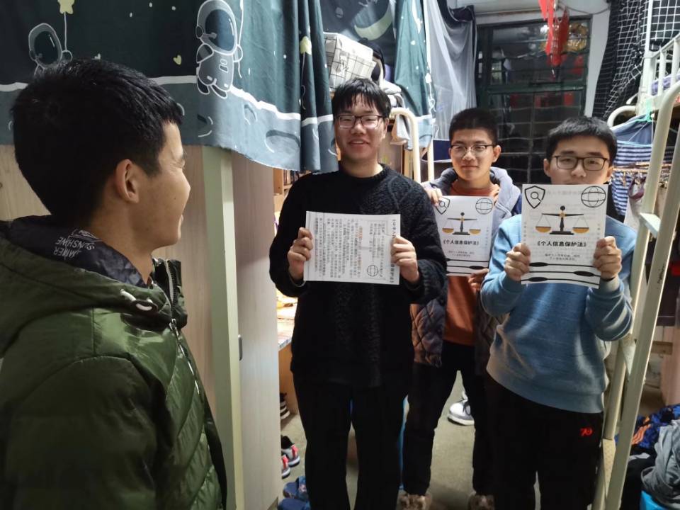 为保护公民隐私,近年来我国不断完善法律体系,《中华人民共和国民法典》《中华人民共和国网络安全法》等法律明确对个人信息的法律保护。今年11月1日,我国最新出台了《中华人民共和国个人信息保护法》。12月1日,人文学院举办了“法律知识下寝室”宣传活动,对《中华人民共和国个人信息保护法》的目的与内容进行宣讲。