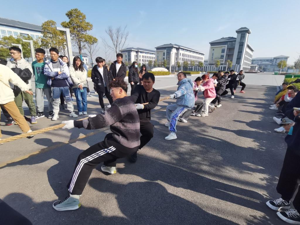 为了增强大学生体育素质,丰富学院文化生活,倡导时尚健康的生活方式,化学与材料工程学院于12月5日上午在学校南门举办了拔河比赛。