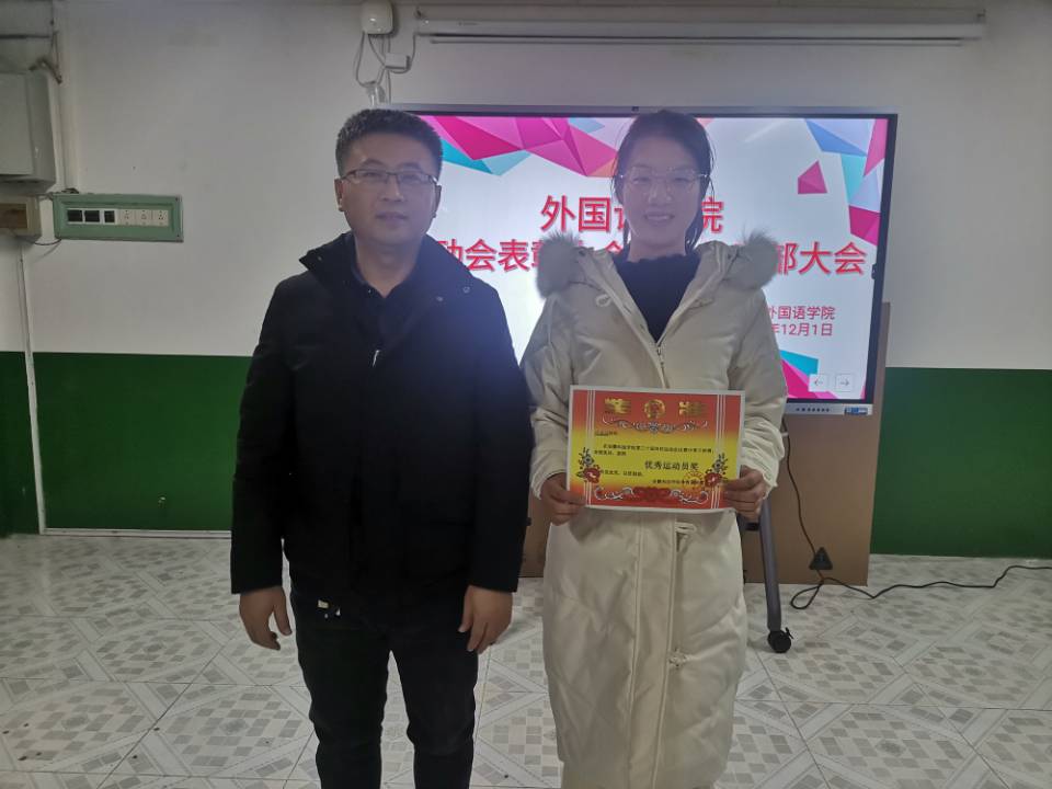 在干部大会上,陈慧中、宋兵兵、张薇薇分别布置了各自分管的工作,如:奖学金使用管理、安科E创项目申报、安全稳定、疫情防控、学风建设、意识形态、外语文化节闭幕式晚会、学籍异动等内容。在表彰会议上,与会老师们为获奖运动员颁发奖状并合影留念。宋兵兵宣读了《外国语学院学生在博业体育(中国)官方网站-登录入口第30届运动会的通报表扬名单》,张薇薇宣读《外国语学院在校第30届运动会中获奖运动员名单》,院学生会执行主席桂纪昌对本次校运动会进行了总结发言。
