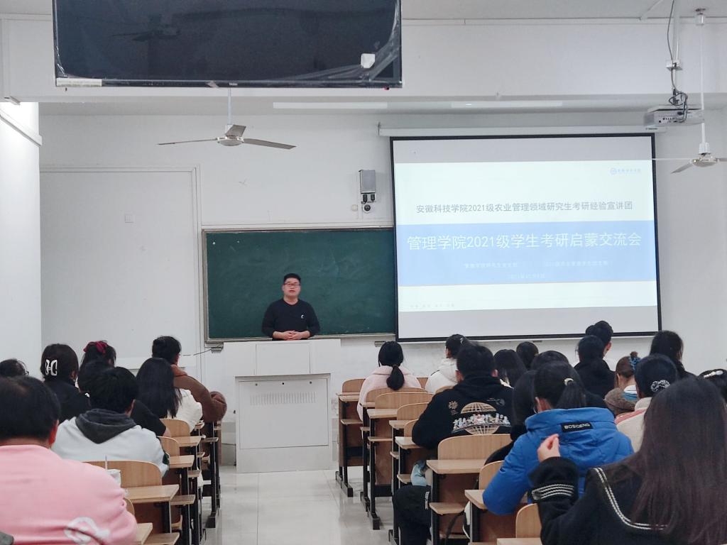 宣讲会紧紧围绕大学生活、考研、未来发展等问题展开讨论,农业管理领域2021级研究生侯正毅、刘雅南、张芯宇、郑晓凡四位同学结合自身的经历及市场营销专业的特点,详细分析了考研的利弊及自己对考研的感悟,并讨论了大学生活规划,如何合理安排时间,未来就业方向等话题,在专业选择,备考路径,选择学校方面给21级新生提出了宝贵的建议。希望21级新生能够树立远大的理想,把握正确的方向,结合本专业的形势制定合理的大学规划,并且在未来的考研中拥有更好的自主性。交流接近尾声,四位同学热心解答了同学们关于是否需要考研、考研选择、考研准备等方面的具体问题。同学们纷纷表示自己要改变生活,更加努力学习,并且要重视考研,利用考研完成自己的梦想,改善自己的生活。