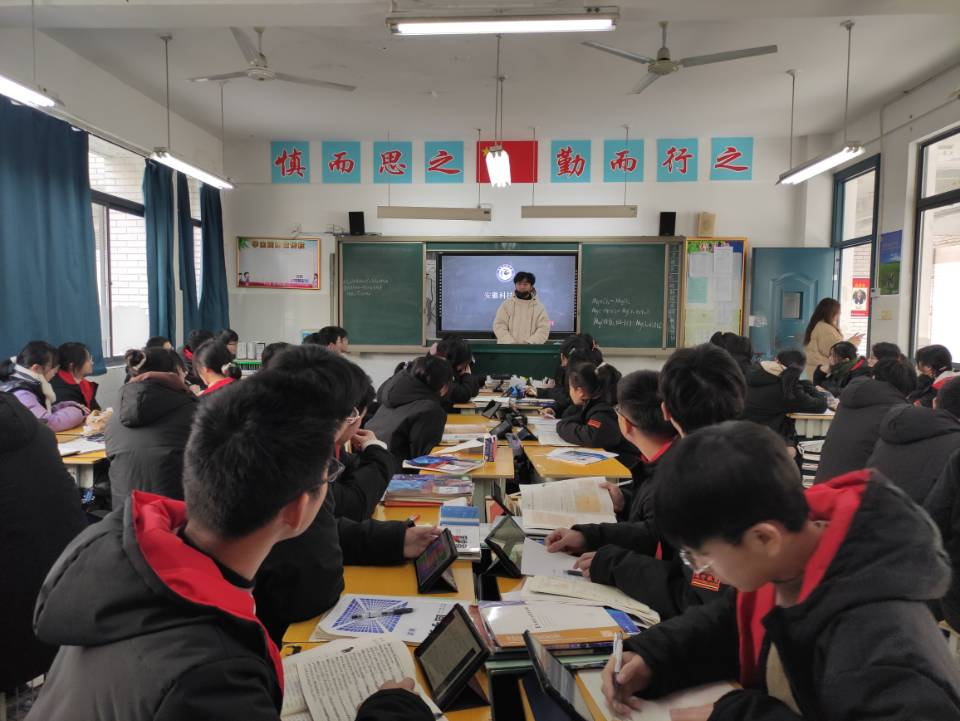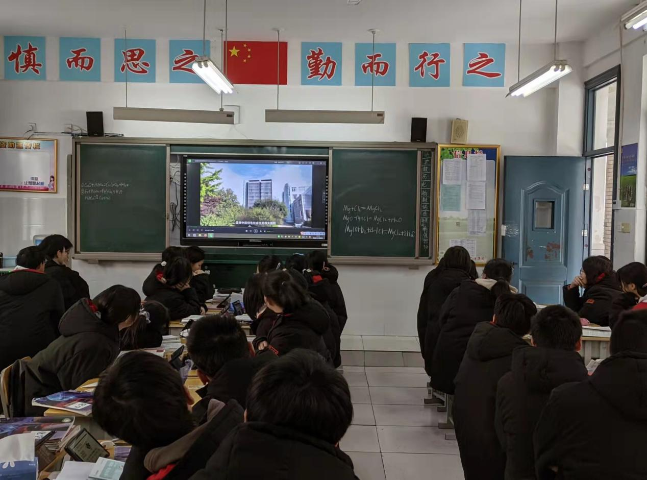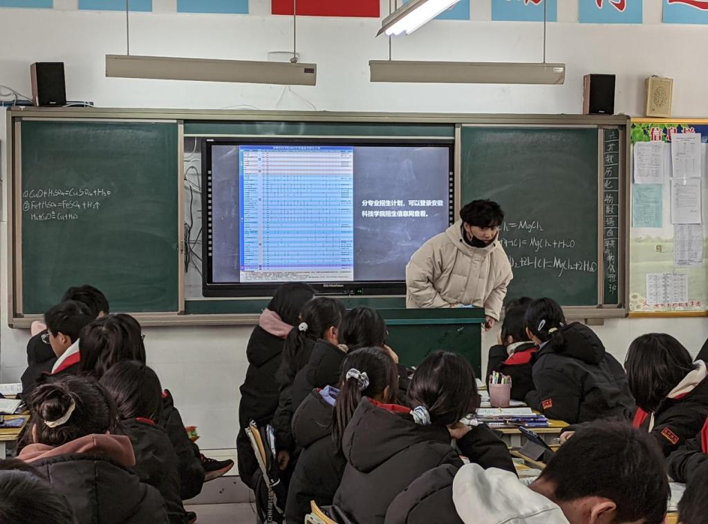 刘志伟团队首先拜访了语文老师王雪莲和英语老师宋梦琼,并与老师进行了交谈。交谈过程中,共同回忆了高中生活的点点滴滴。他向老师汇报了这几个月在大学生活和学习上的变化与成长,向老师展示了在学院参加活动时的照片等。并向老师详细介绍了博业体育(中国)官方网站-登录入口的相关情况如学校条件、校园风景、师资水平、考研录取率等。合肥高升学校的年级主任、数学老师宋仔义,听说团队此行的目的之后,热情地安排了刘志伟团队与高三学子进行互动交流。